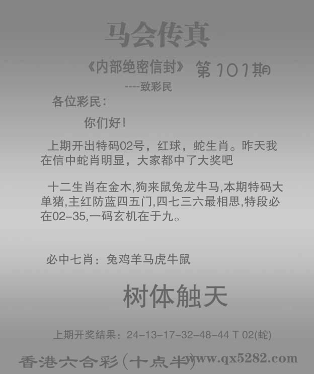 温馨提醒:论坛多说交流平台本着为彩民互动交流,但近段时间最近站长收到不少彩民投诉,不法份子借着多说交流平台,冒充高手将彩民骗进群里实行收费诈骗,请还没被骗的彩民谨慎,如果非要给骗子机会,本站皆不负责! 请大家多多支持香港六合彩(十点半)www.qx5282.com