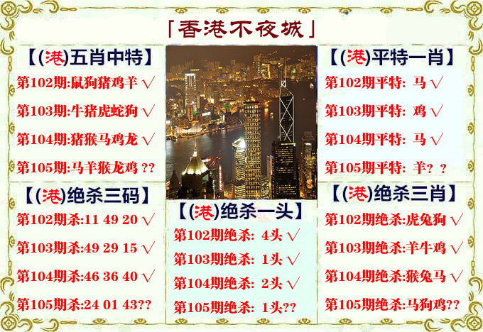 103期:必中⑥肖:虎蛇龙羊兔鸡