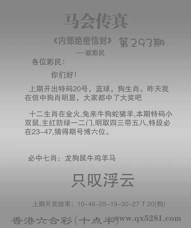温馨提醒:论坛多说交流平台本着为彩民互动交流,但近段时间最近站长收到不少彩民投诉,不法份子借着多说交流平台,冒充高手将彩民骗进群里实行收费诈骗,请还没被骗的彩民谨慎,如果非要给骗子机会,本站皆不负责! 请大家多多支持香港六合彩(十点半)www.qx5281.com