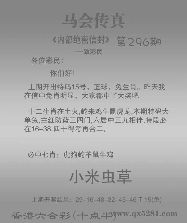 294期: ⑥肖 鸡马狗兔蛇 鼠30中