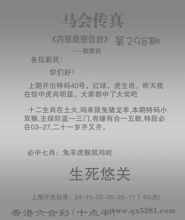 297期: ⑦肖 兔猴蛇狗牛 虎40中