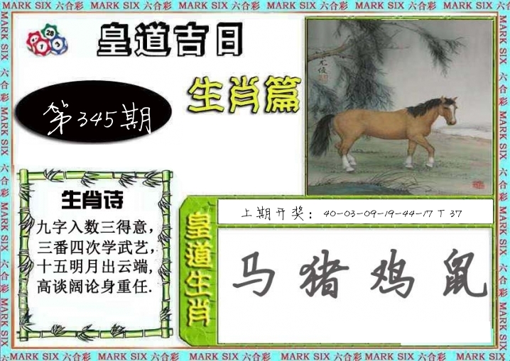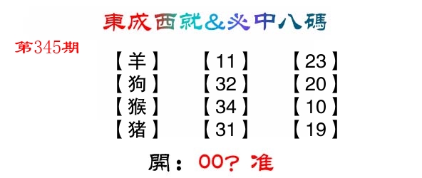 | 345期: ⑧肖 | 马兔猴虎牛羊鼠猪 | ????中 |