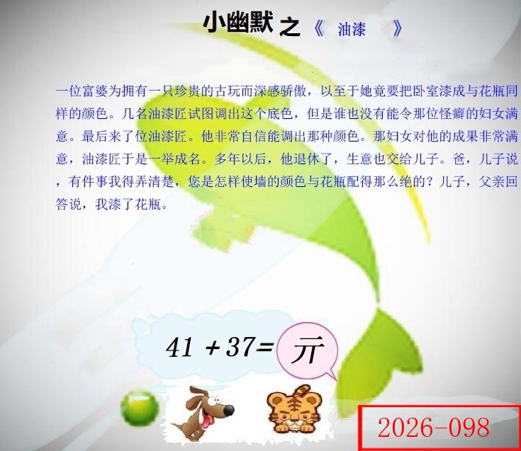 107期: ⑦肖 猪鸡狗马牛虎 蛇26中
