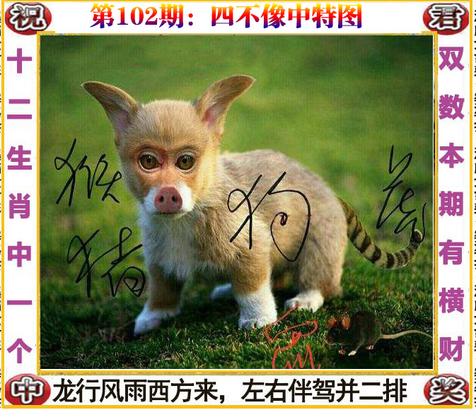 102期:必中⑨肖:马龙狗鼠羊虎猪猴