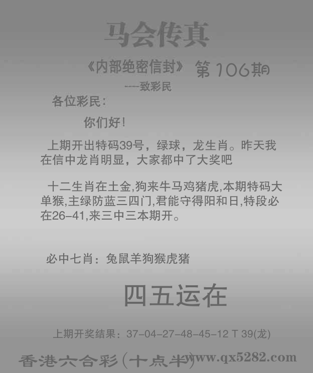 105期: ⑦肖 马兔蛇虎猪鸡猴 龙39中