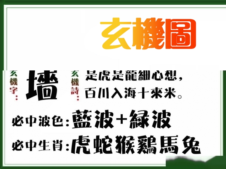 110期: ④肖 蛇牛鸡猴 ????中