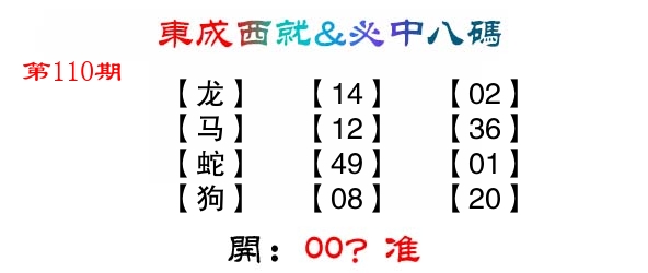 110期: ⑧肖 蛇牛鸡猴猪龙马兔 ????中