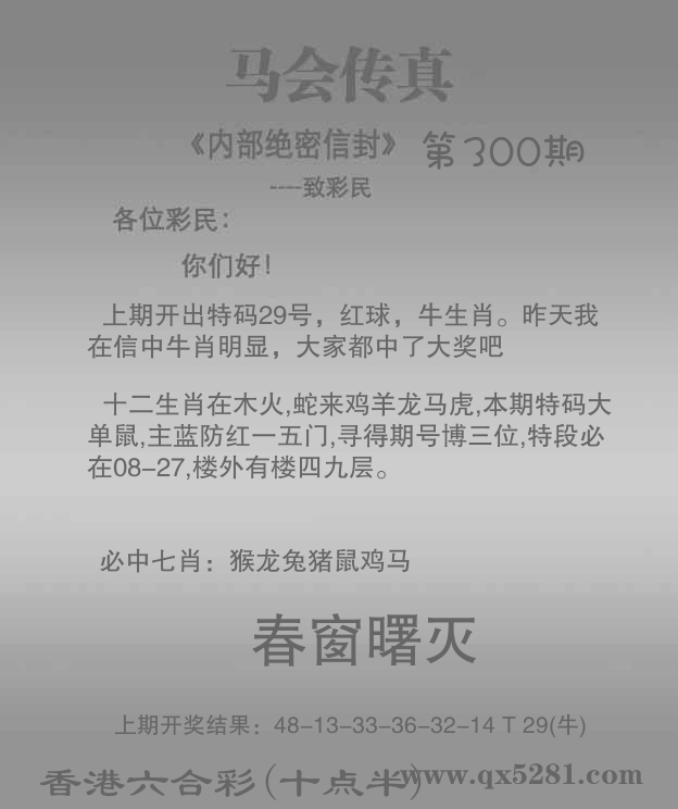 294期: ⑥肖 鸡马狗兔蛇 鼠30中