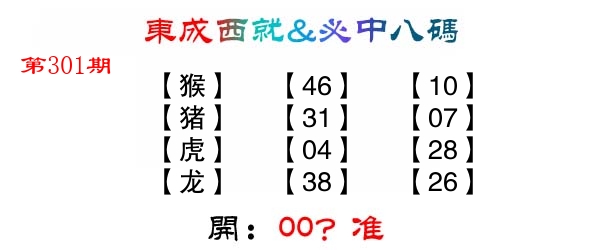 301期: ⑥肖 兔鼠猪蛇虎马 ????中