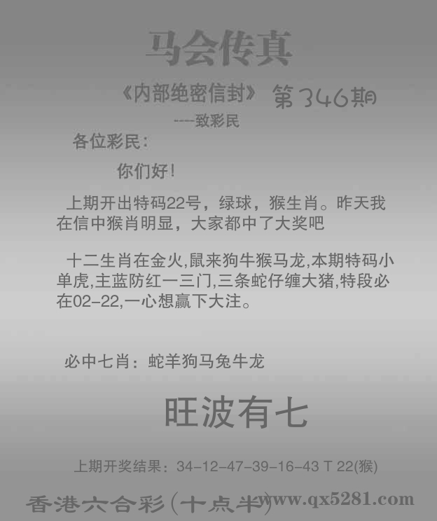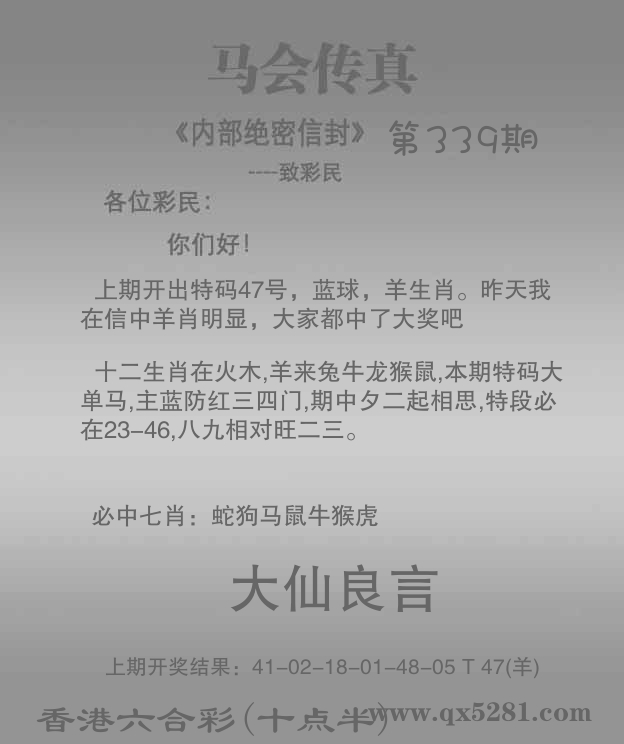 | 338期: ⑥肖 | 猪鸡羊猴兔马 | 羊47中 |