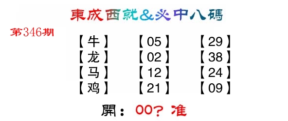 | 345期: ⑧肖 | 马兔猴虎牛羊鼠猪 | ????中 |